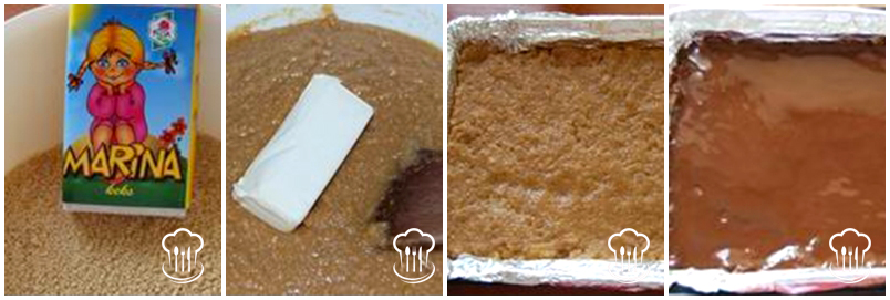 - Keksy rukou alebo valčekom na doske rozdrvíme. Ja som ich rozmixovala v mixéri.