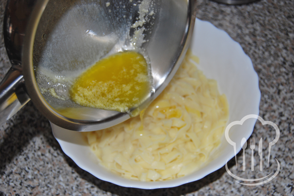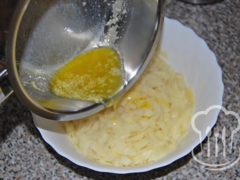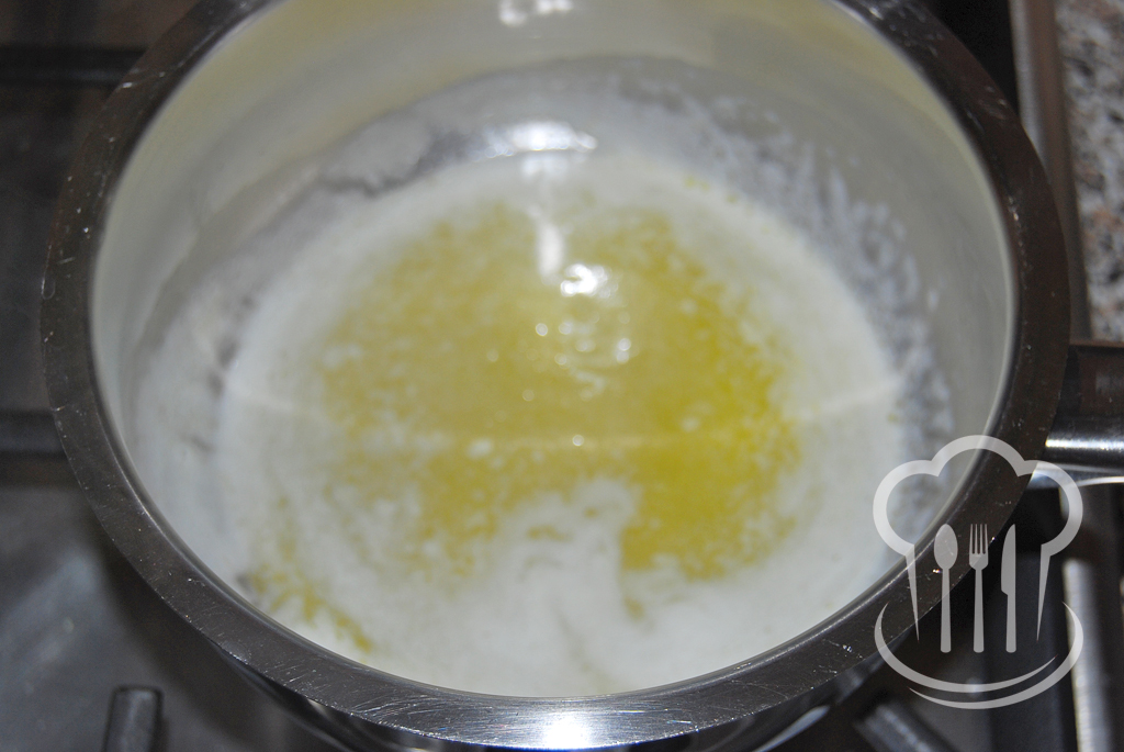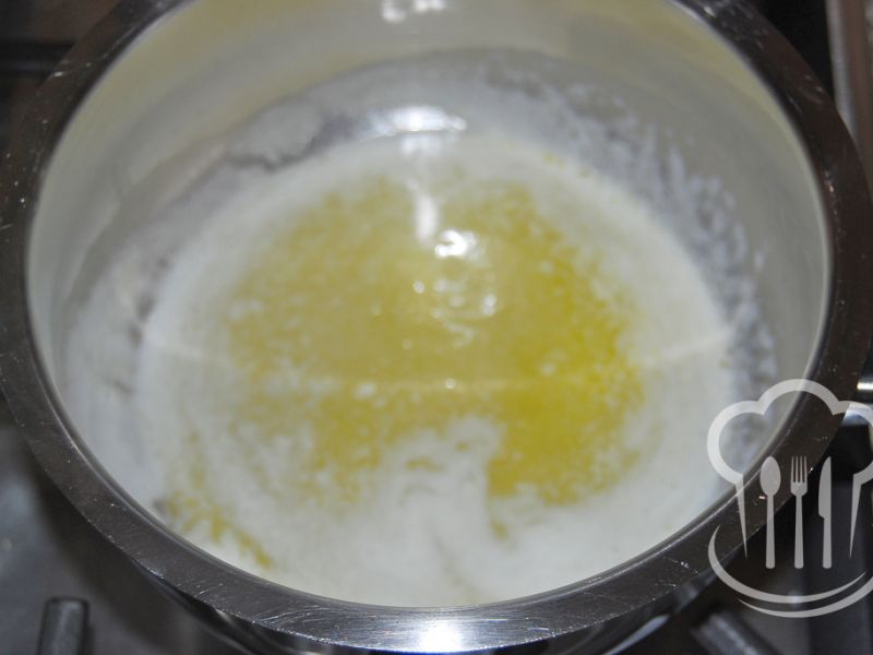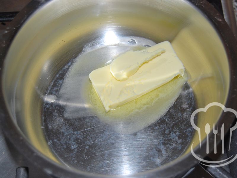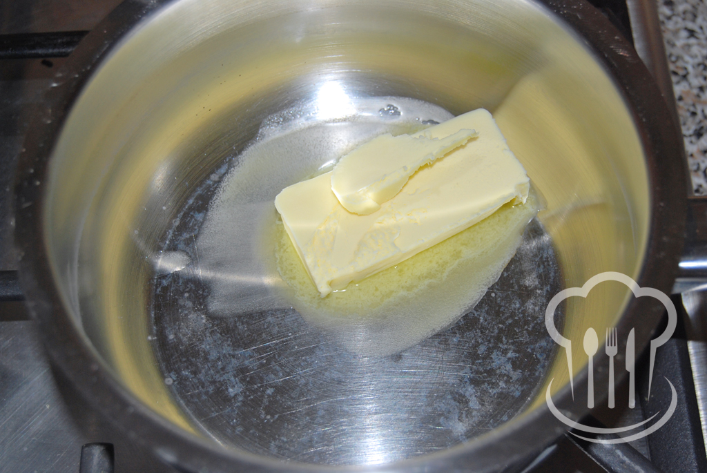 - Kým začne voda vrieť, pripravíme si maslo. Vložíme ho do menšieho hrnca a rozpražíme ho (Nestačí ho rozpustiť, musí sa rozpražiť. Ale dávajte pozor, aby vám neprihorelo.).