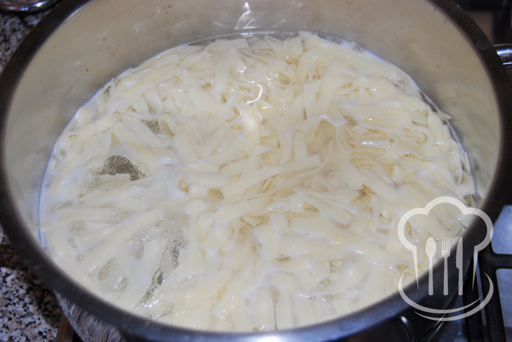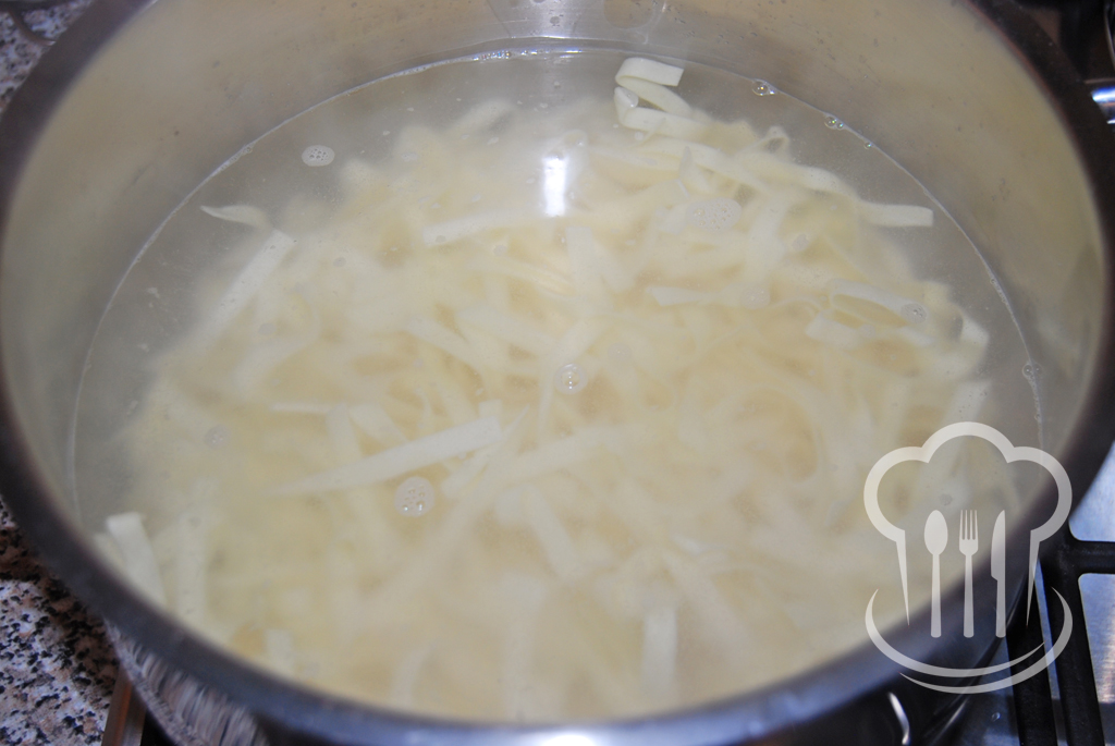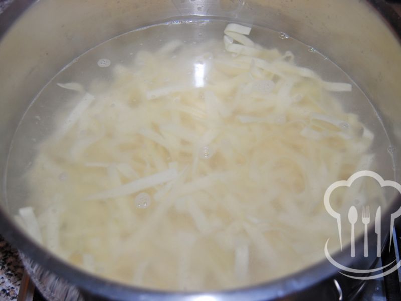 - Do veľkého hrnca napustíme vodu a privedieme k varu. Mierne osolíme.